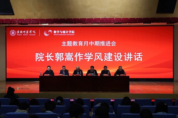 为深入贯彻落实立德树人根本任务,持续强化学院学风建设实效,引领青年学生明晰成长方向、筑牢成长根基,4月15日晚,数统学院在图书馆学术报告厅召开“勤学笃行 挺膺担当”主题教育月中期推进会。学院领导班子成员、全体辅导员、班主任代表及2024级、2025级全体学生参加会议。会议由学院党委副书记吴言主持。